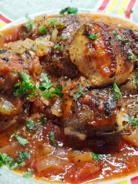 0 ЛюбимиЯстия с ПилешкоПилешки бутчета с картофи в сладко кисел сос