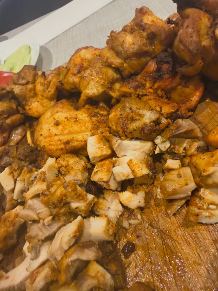 - Остави готовото пиле да „си поеме въздух“ за 5 минути, след което го нарежи на ситно – точно като от дюнерджийницата.