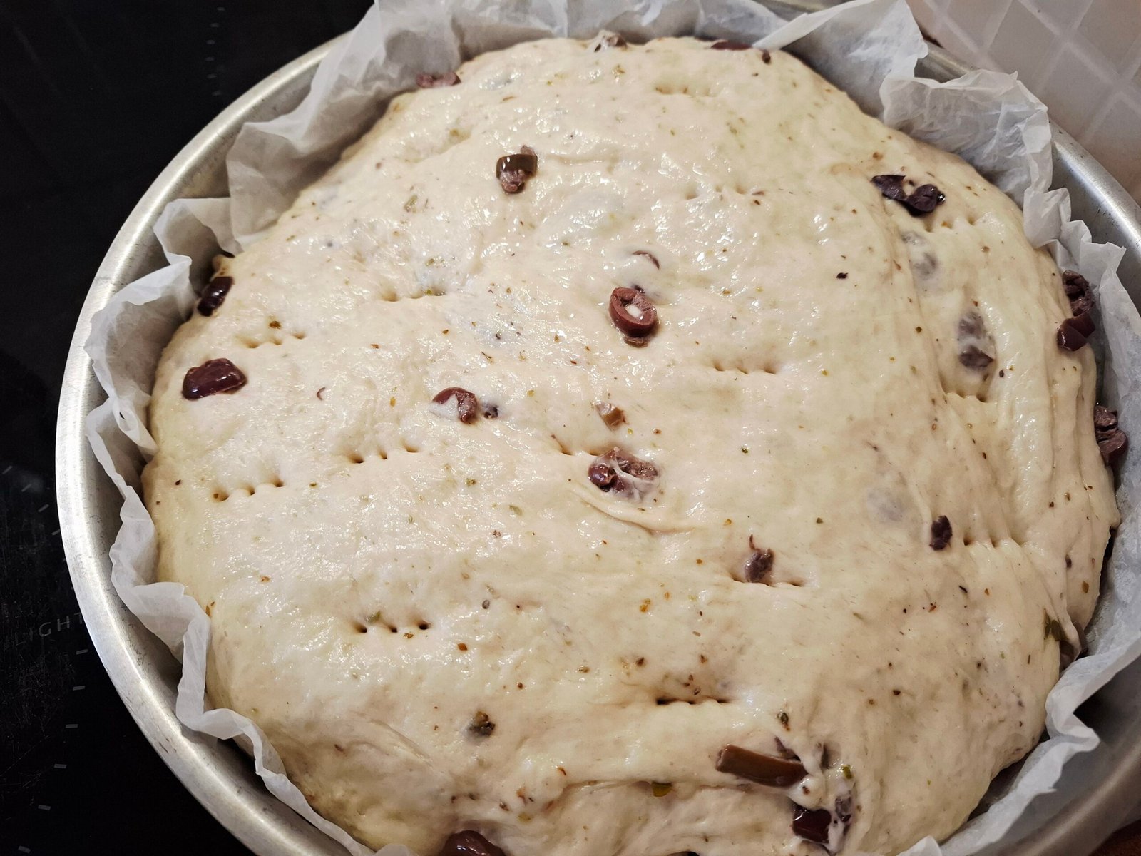Тази питка съчетава простотата на традиционното тесто с лека средиземноморска нотка. Маслините внасят солен контраст, зехтинът придава копринена мекота, а всяка хапка е като малък празник. Приготвянето е спокойно и приятно – тестото се замесва лесно, втасва бавно и се оформя с ръце, както са правили нашите баби, само че с щипка южен аромат.