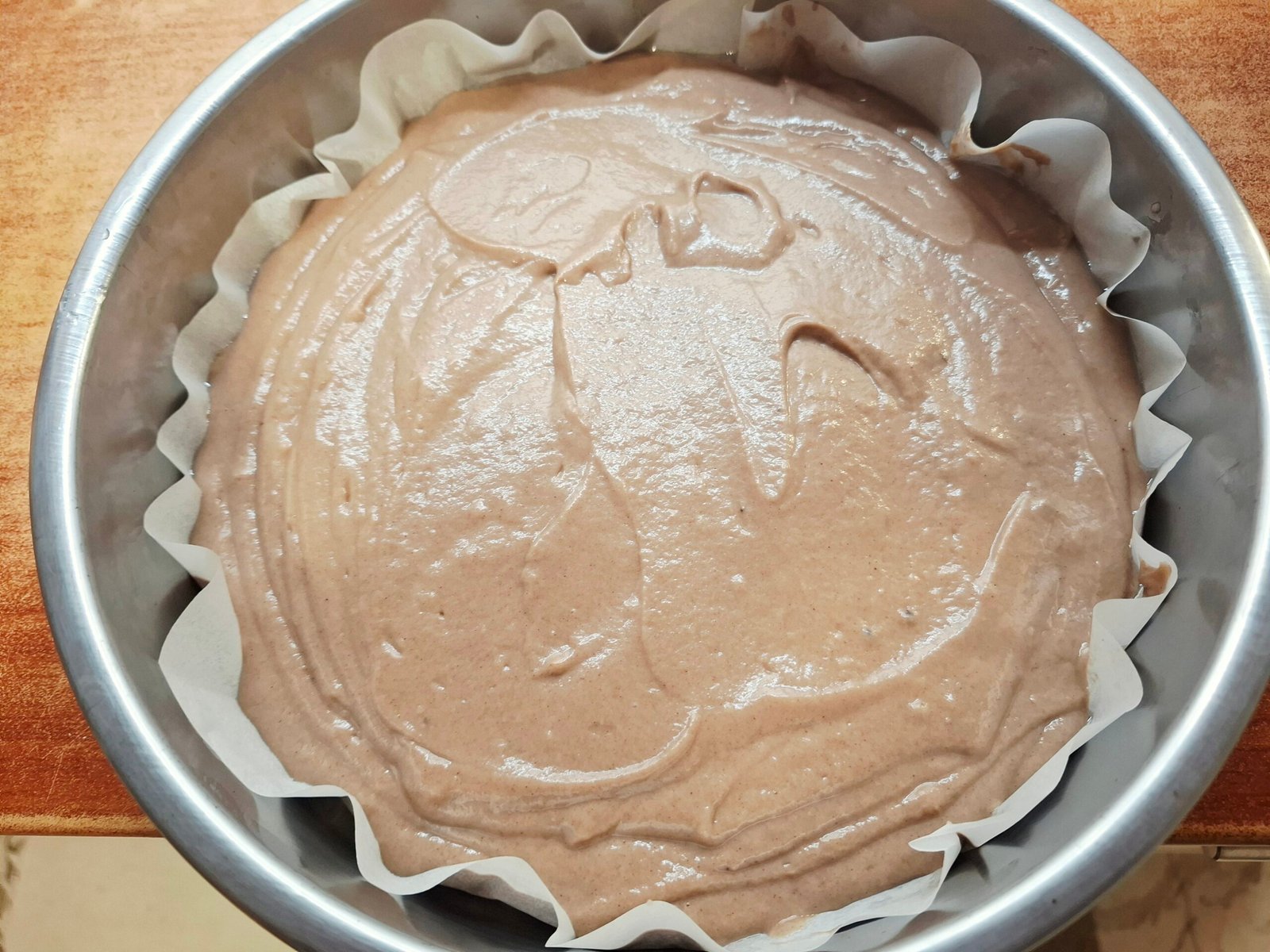 2. Изсипваме тестото в тавичка,на дъното на която сме поставили хартия за печене и печем в предварително загрята на 175° фурна за около 40 мин.