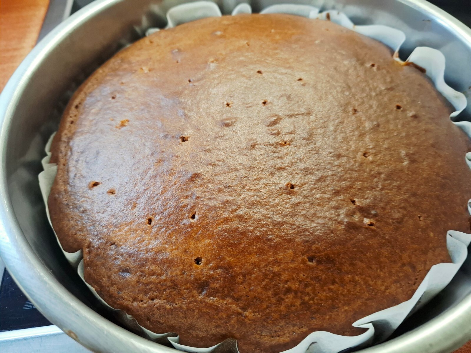 5. След като сладкиша се опече го обръщаме ,отстраняваме хартията ,оставяме да се охлади ,и го сиропираме .