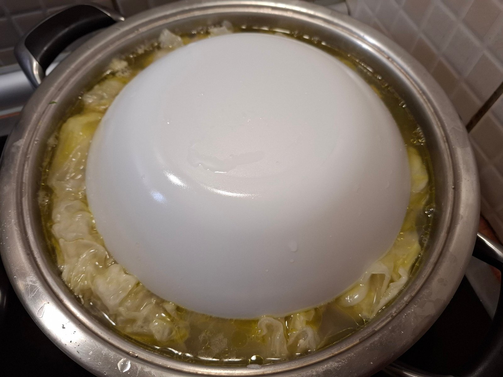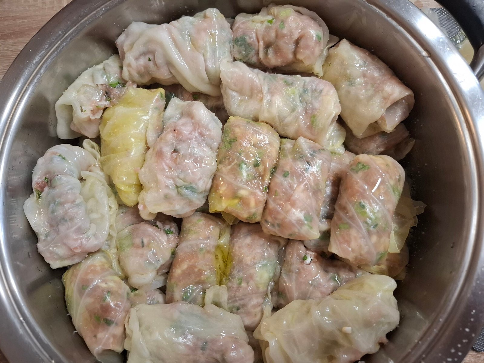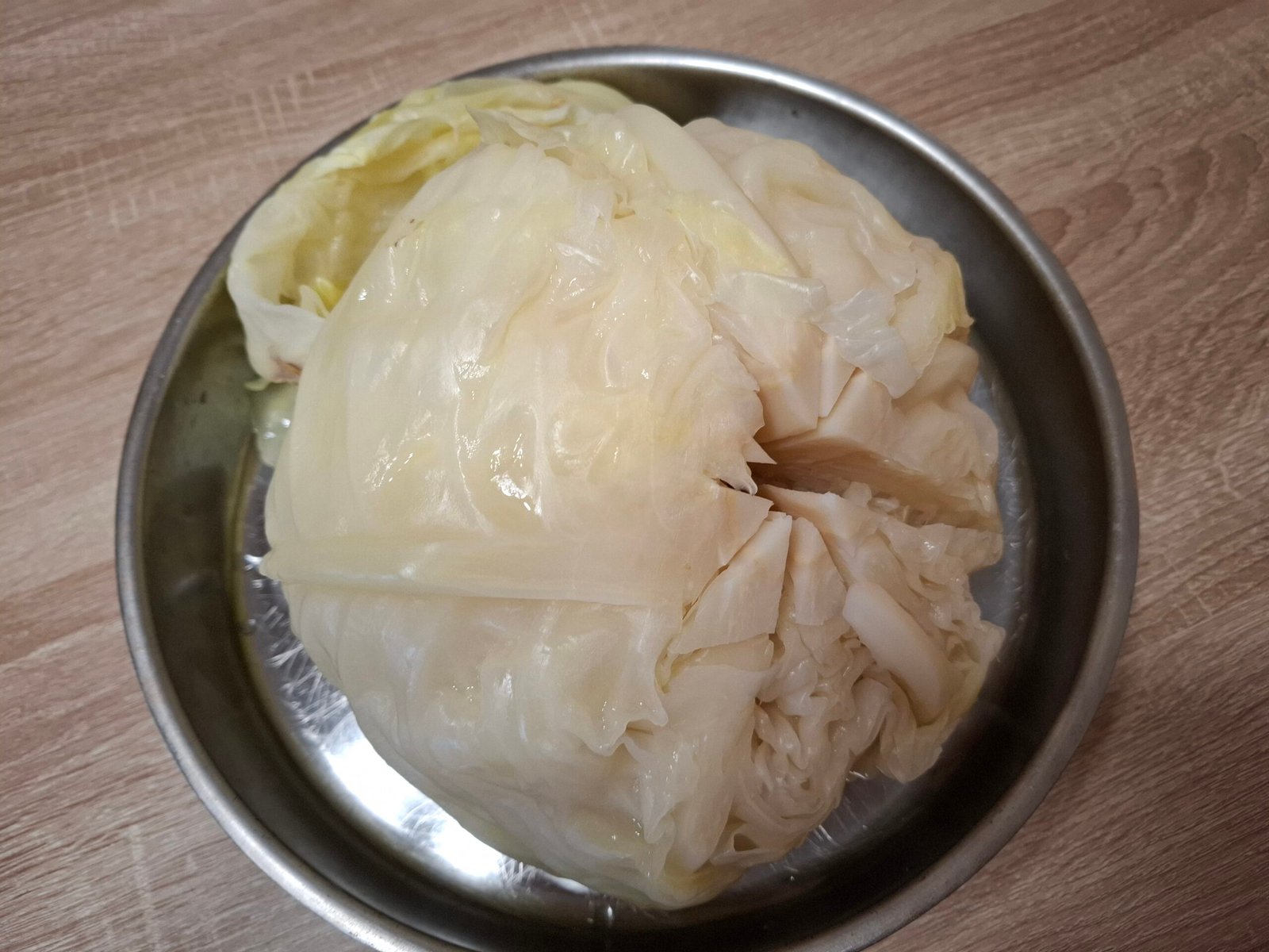 - Изваждаме омекналата зелка,прецеждаме водата и оставяме да се охладят,не хвърляме водата!