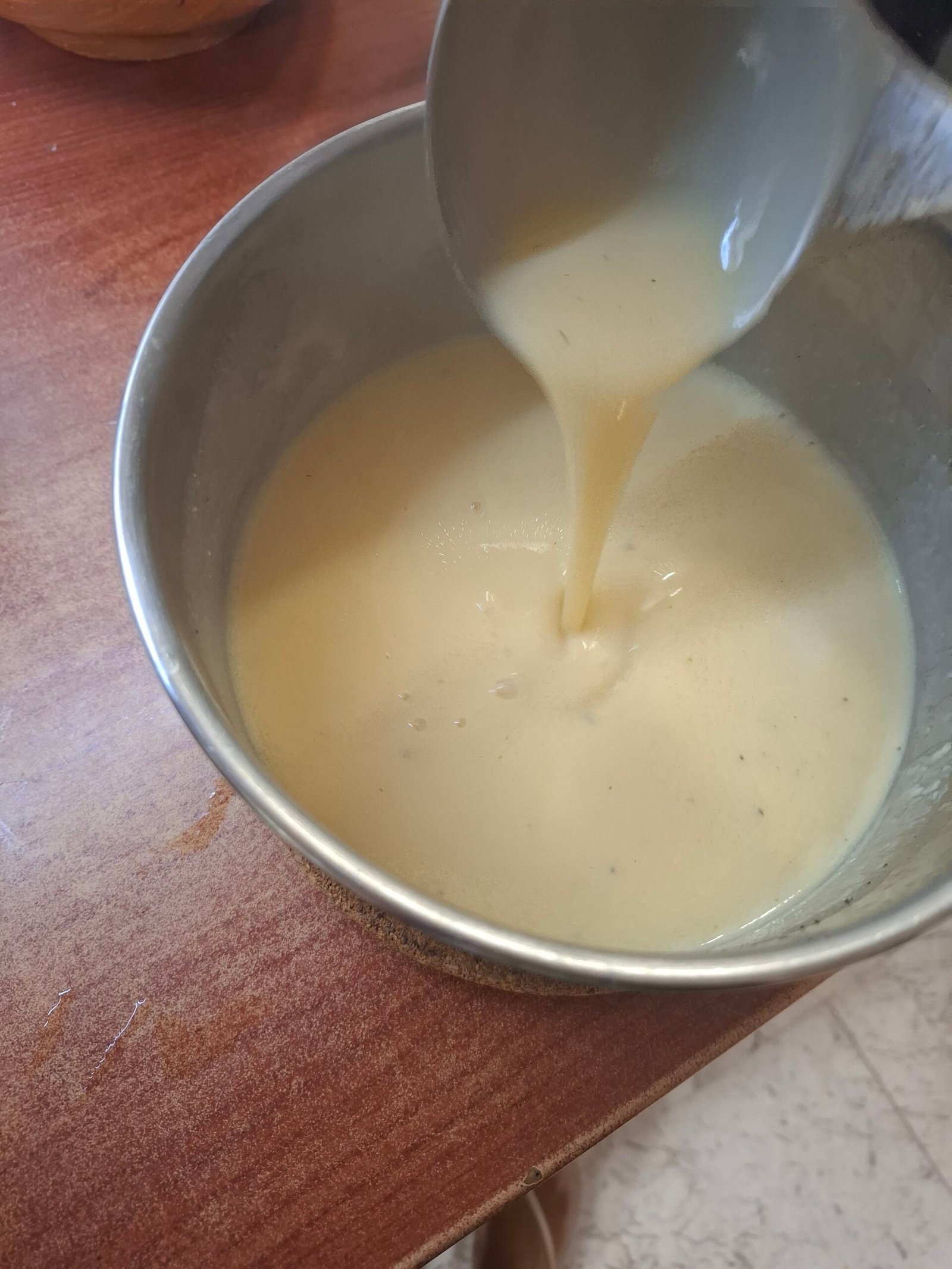 - Разбиваме много добре,прибавяме на части течността от тенджерата където са вряли сармите като не спираме да разбиваме .